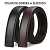 Nuestros cinturones automáticos no poseen agujeros en correa ni hebilla clásica. La correa es de cuero y son ajustables al diámetro requerido.